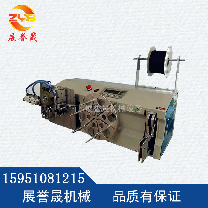 此設(shè)備在原有自動(dòng)原有繞線扎線機(jī)基本上,增加了自動(dòng)計(jì)米、排線、切斷功能。配有4部電機(jī)繞線(繞線馬達(dá)和扭線馬達(dá)為步進(jìn)電機(jī)),采用PLC電腦程序觸摸屏控制計(jì)米長度、扎帶送出長度、自動(dòng)切扎帶、扎帶扭結(jié)??扇我庠O(shè)定圈數(shù)并且繞線轉(zhuǎn)速可調(diào)。本機(jī)適用于AC電源線、DC電源線、USB數(shù)據(jù)線、視頻線、HDMI高清線等各類傳輸采用包膠鐵芯扭扎成束,也可用于其他要用包膠鐵芯扎緊之用,如衣架、衛(wèi)浴膠管等行業(yè)。